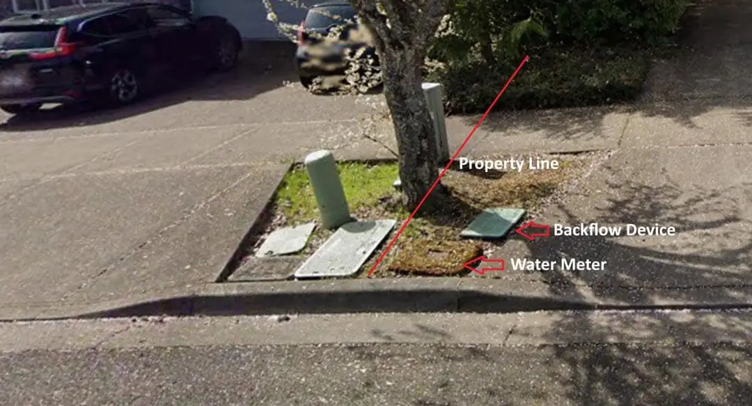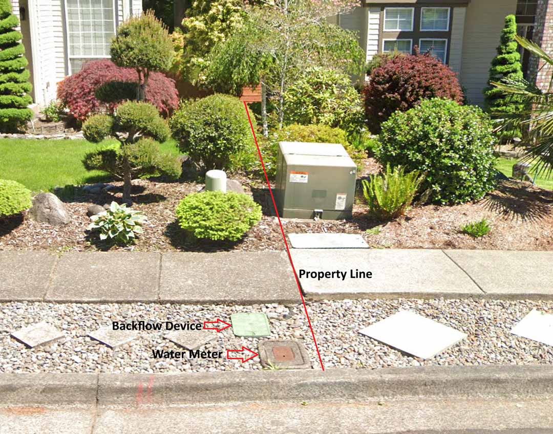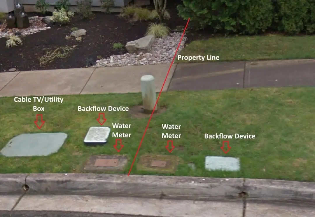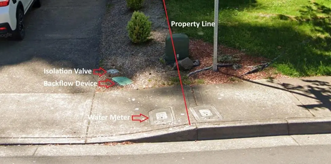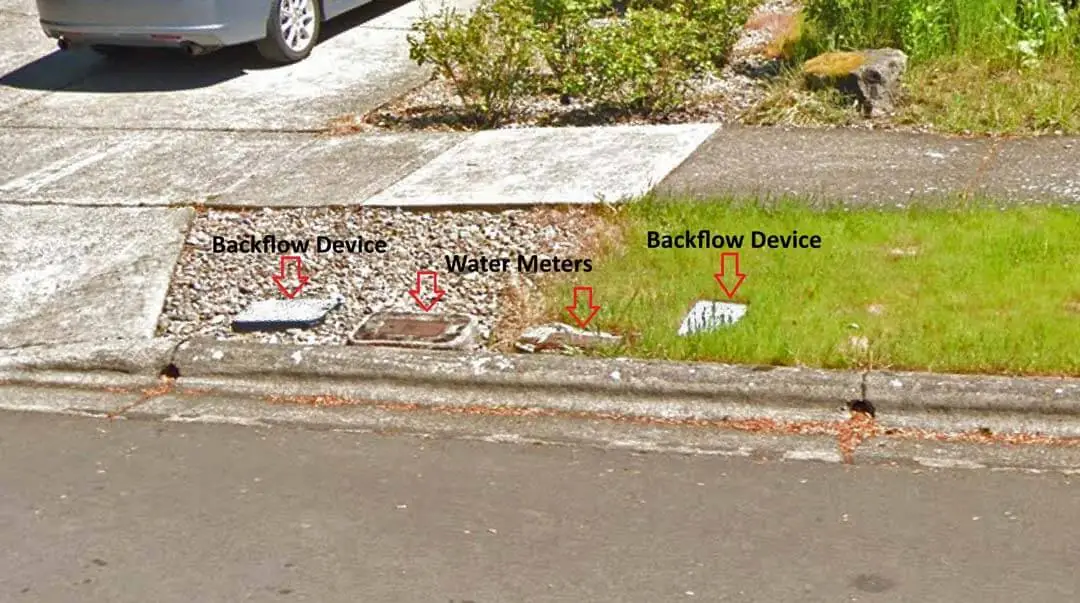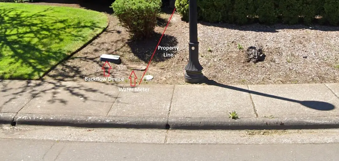 First you’ll want to locate your water meter. Because in most cases, the backflow device is located near the water meter. And if there is an isolation valve, that would also be located near the backflow device. If an isolation valve is installed, it’s generally in a small round valve box right next to the backflow device valve box or otherwise may be inside the backflow device valve box. Irrigation, backflow and isolation valve boxes are usually GREEN in color. Once you locate where your water meter is, if you cannot locate any green valve boxes nearby, your backflow device valve box and/or isolation valve box may be up near the foundation of the house in the front yard or even on the side of the house, usually near the foundation. Photos of each of these scenarios are shown in the image slider and video below.