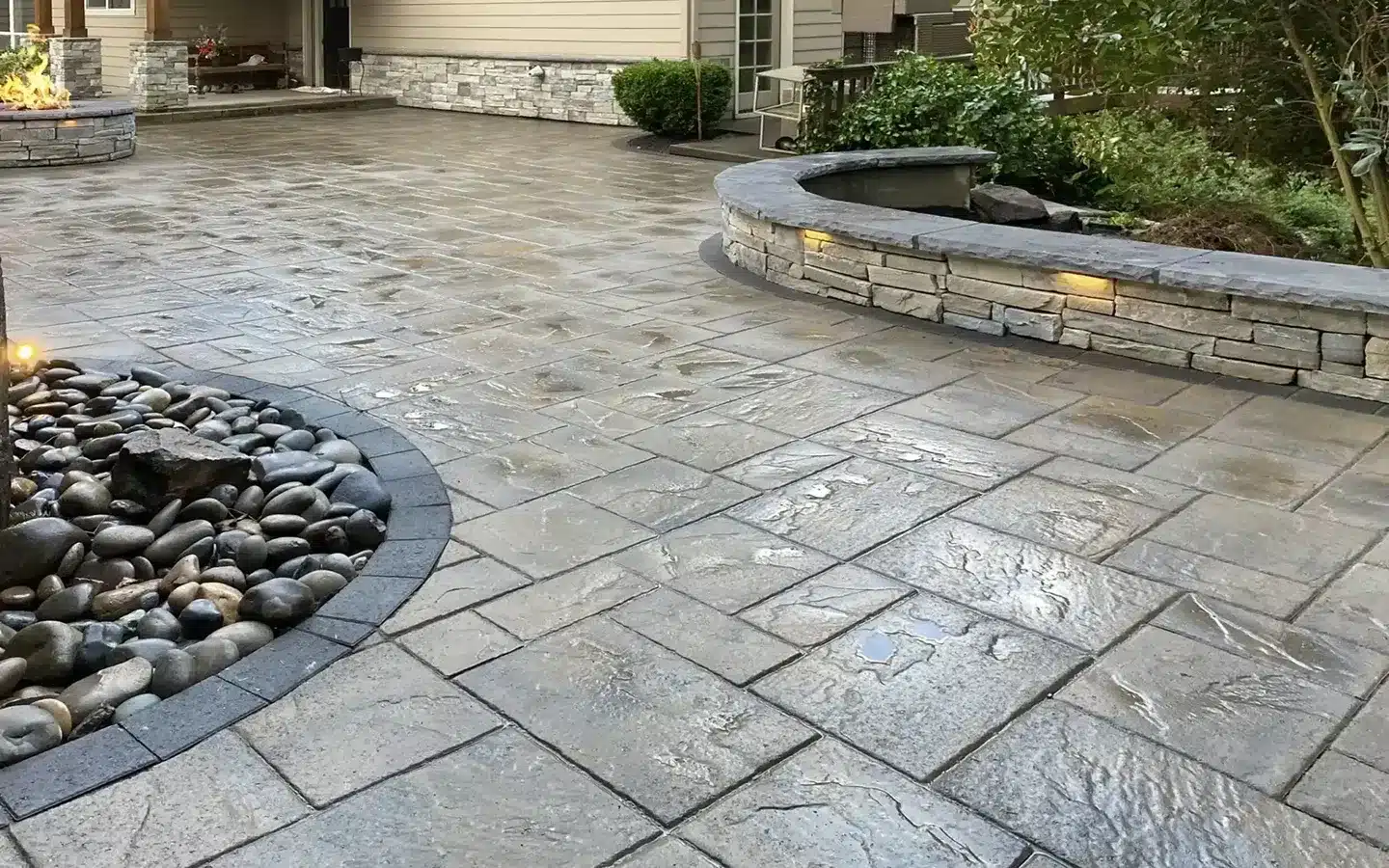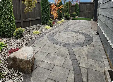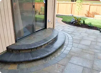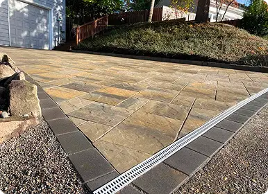 Interlocking pavers offer significant advantages. The primary benefit is that they don’t crack like a solid concrete slab can. Pavers provide a huge variety of design options, from simulating cobblestone to modern tile, offering a much richer look. Furthermore, if a repair is ever needed due to a tree root or other issue, we can simply repair the affected area without replacing the entire surface.
